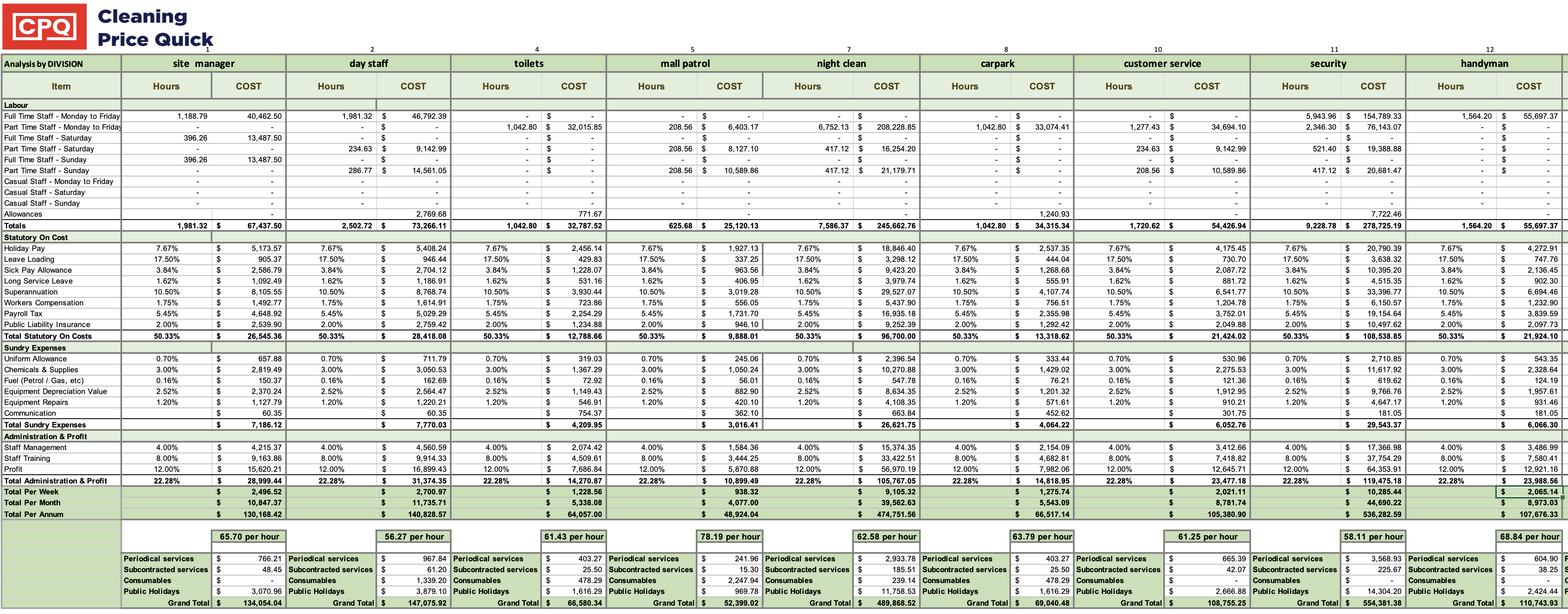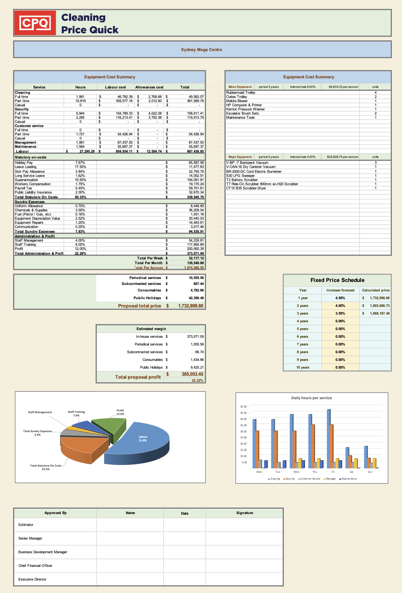 Cleaning Price Quick makes it easy to price and complete your tender for cleaning and related services, security and more